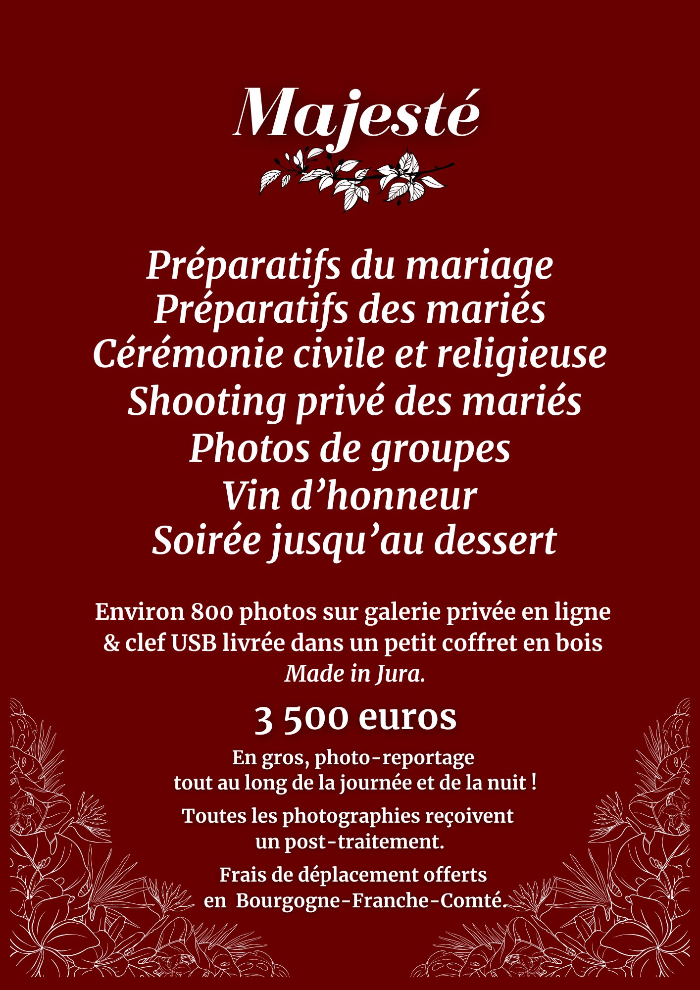 Frais de déplacements à prévoir pour tout mariage à 50 km au-delà de Dole.