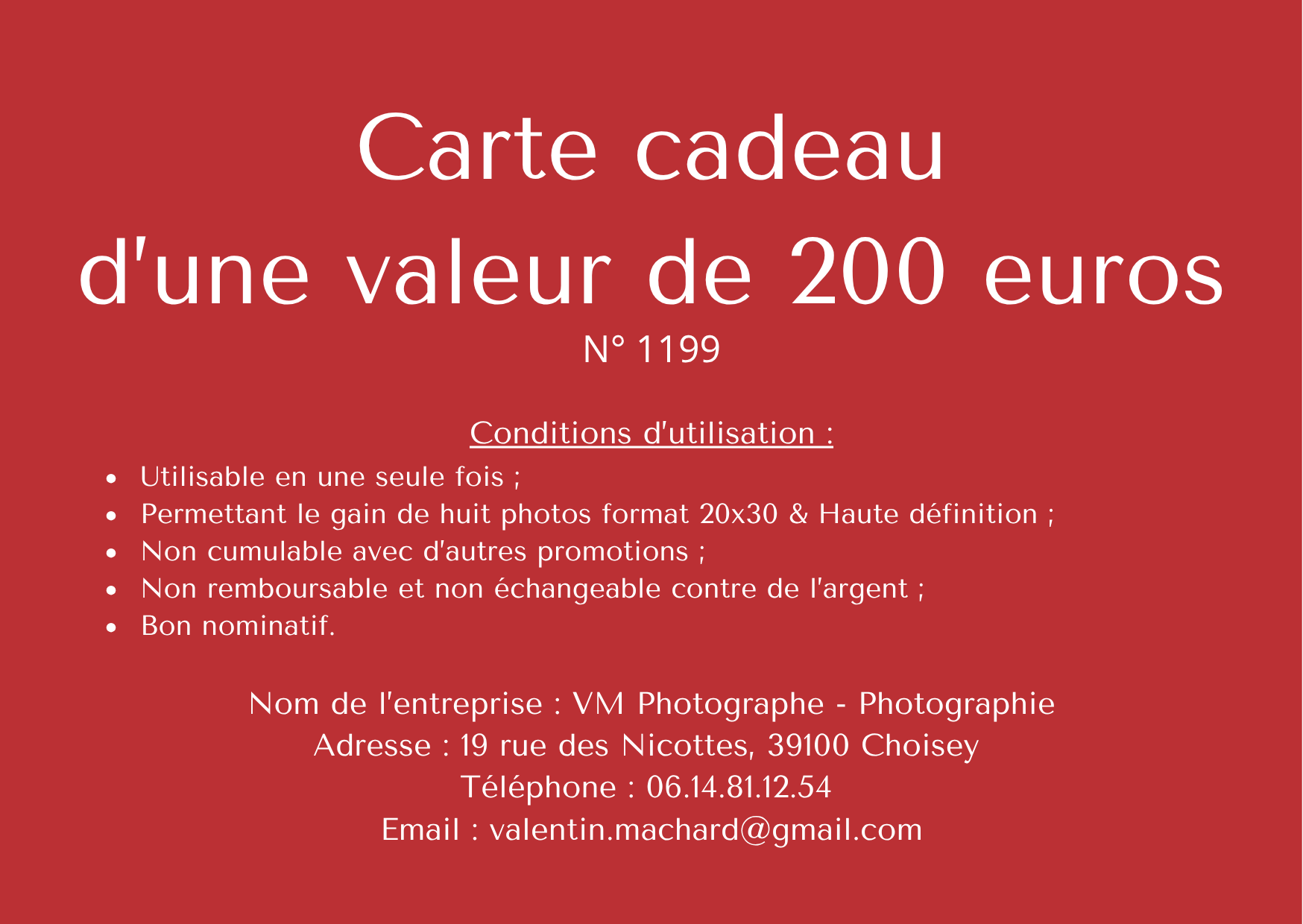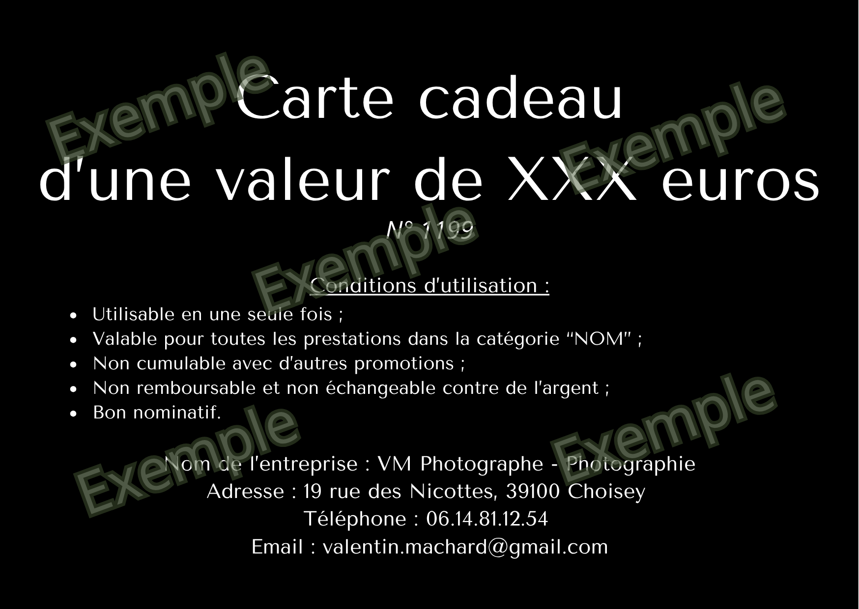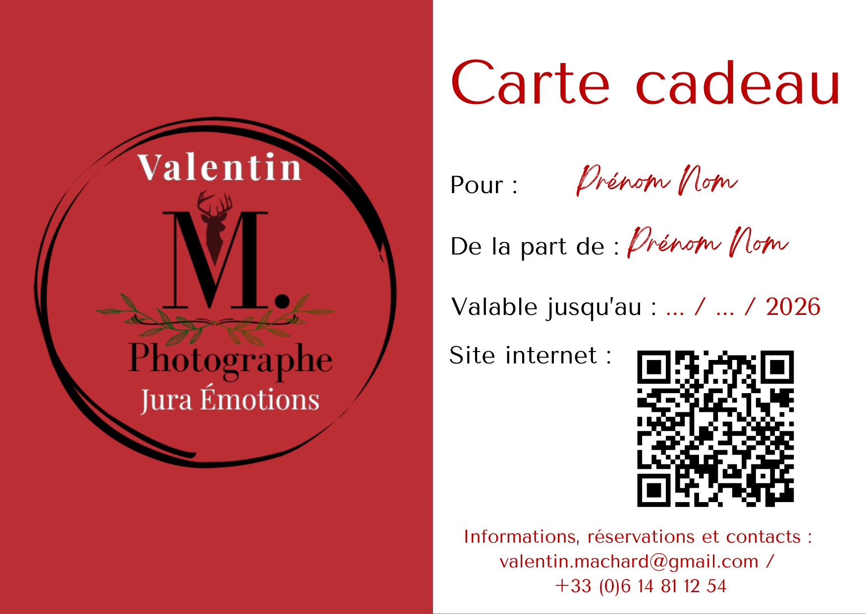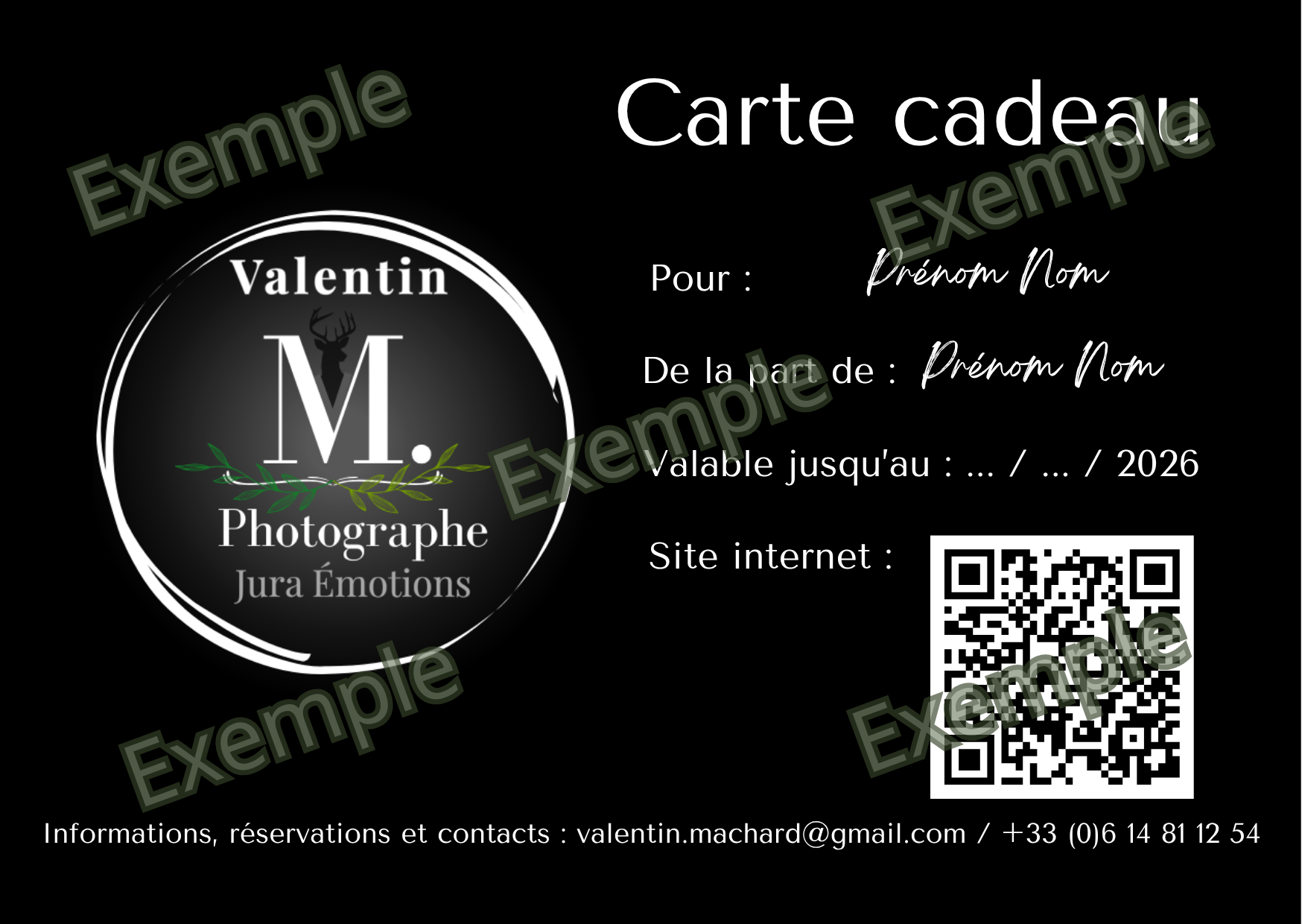 Vous voulez faire plaisir ? C’est simple : Valentin M. propose des cartes cadeaux personnalisables, valables sur l’ensemble de ses prestations.